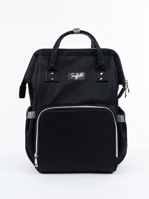 The only bag a dancer needs! This bag has handles and backpack straps. On the outside of the bag, the front features a large, zippered compartment that contains an insulated snack pocket; while the back features a zippered cell phone pocket; and a rear zipper that has access to the main compartment. Inside the bag, there are 6 individual compartments perfect for dance shoes. Inside there are also two zippered compartments, one with water-proof lining.
