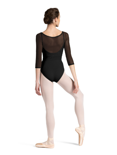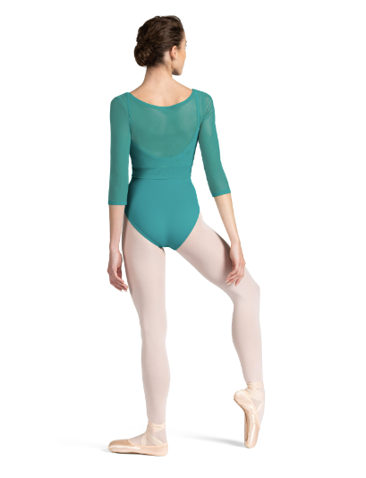 Our Ladies Mirella Miami ¾ Sleeve Top features a classic boat neck with soft mesh ¾ length sleeves and delicate wrap over hemline. Pair with one of our Mirella Miami leotards for your perfect dance ensemble. Part of our Mirella Miami Collection; showcasing intricately braided trims, elegant mesh panels, and golden hardware. The collection boasts a striking palette, injecting South Beach glamour into your dance attire.