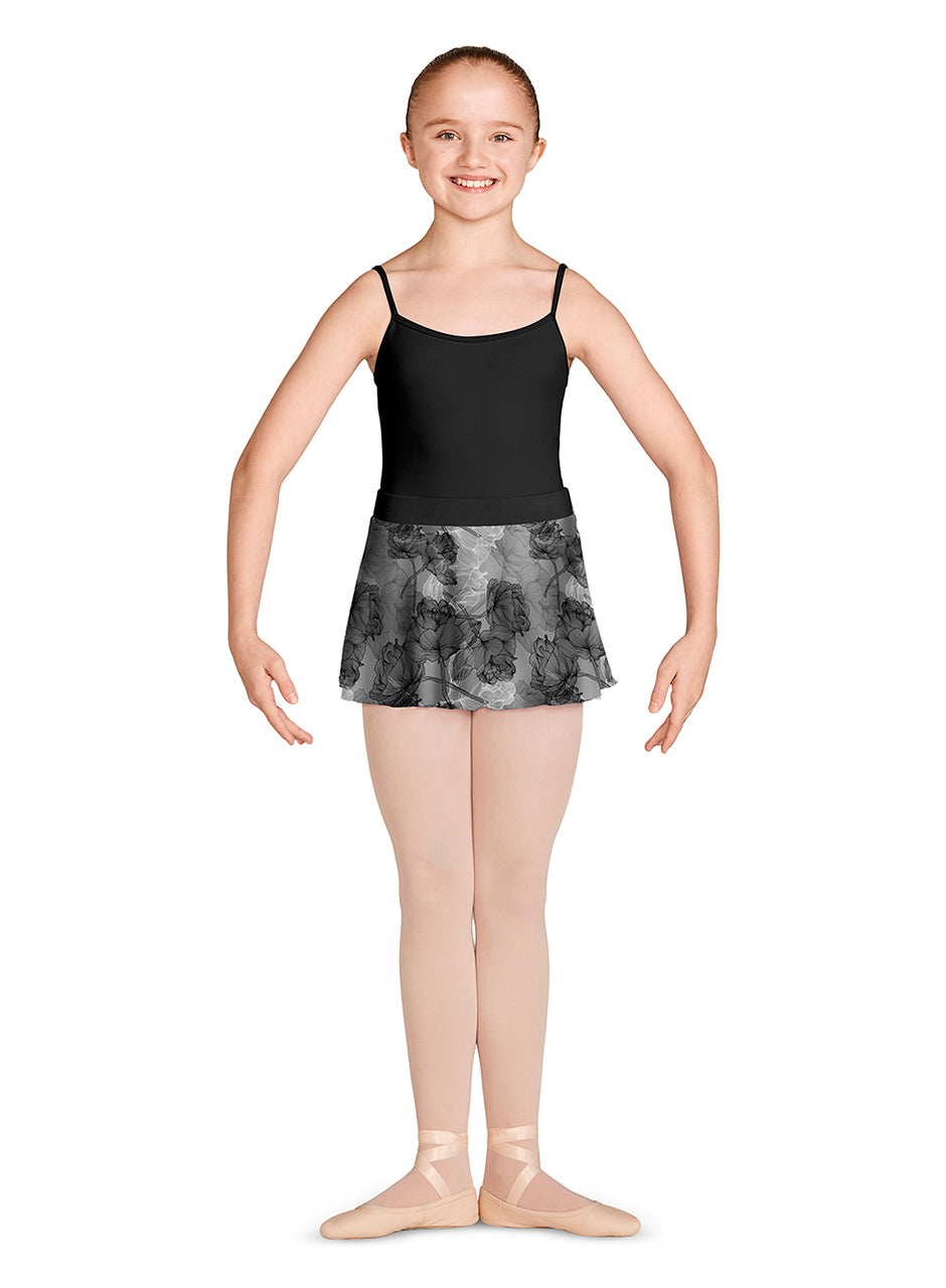 This beautiful Mirella skirt is decorated with delicate peonies in monochromatic pink or black. Light weight mesh with elastic waistband. MS141C