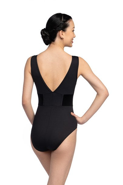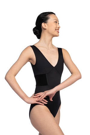This modern silhouette features a deep V neckline making it one of our most flattering styles. With lux velvet wrap-around panels and a natural waist seam, this striking leo is sure to make you feel daring and confident.